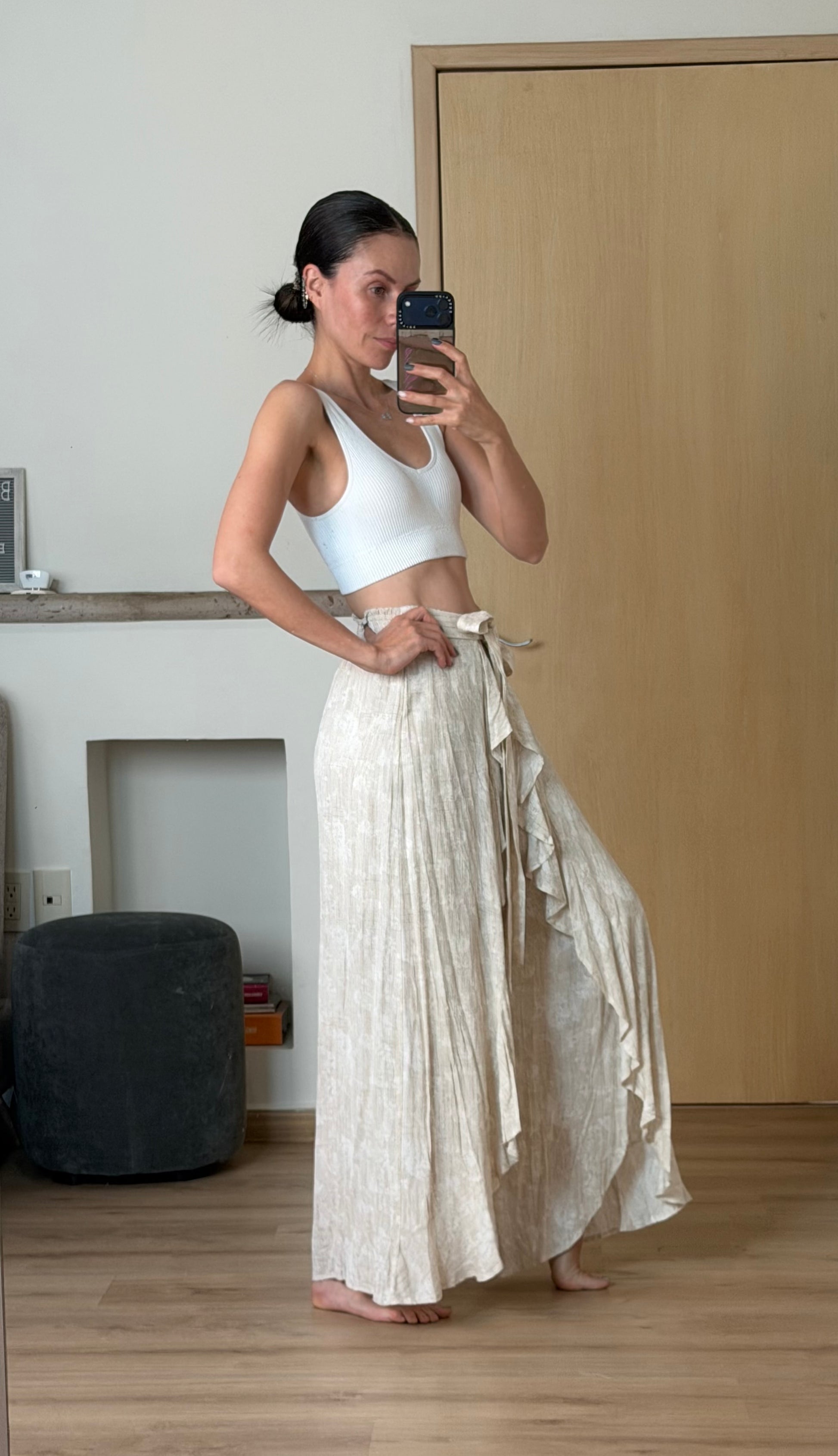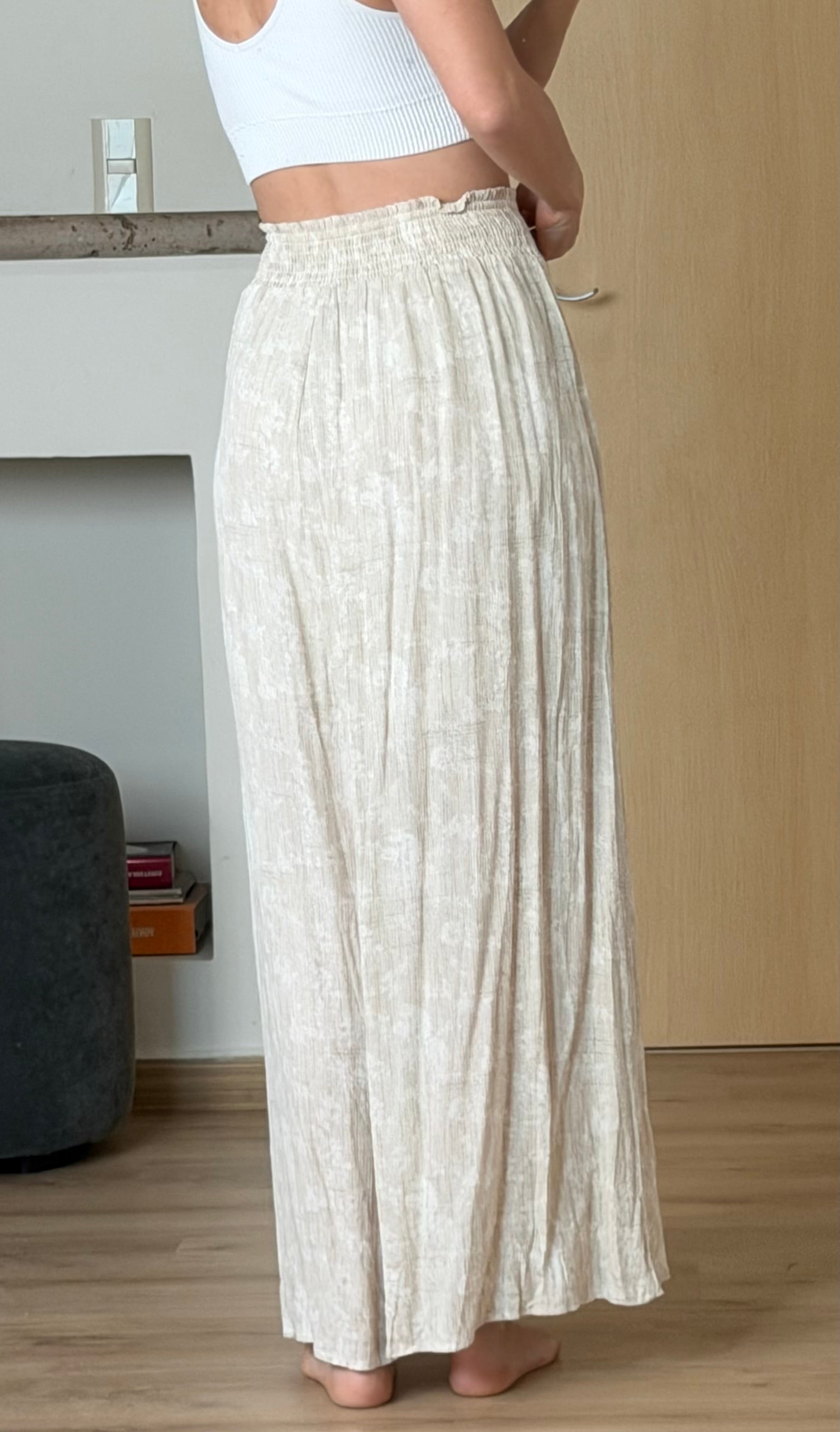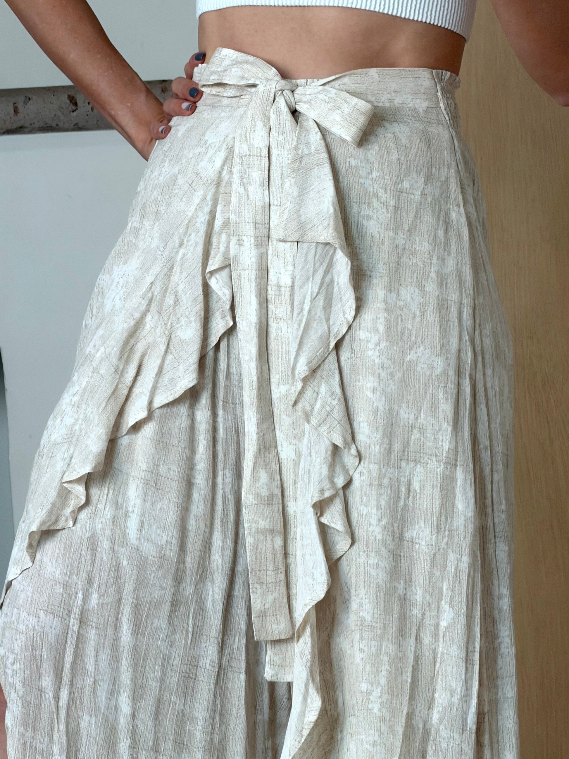 Nuestro Pants Seashell es la definición de frescura con estilo. Su diseño fluido y ligero lo convierte en una prenda ideal para la temporada de verano, mientras que la abertura frontal añade un toque de sensualidad sutil y libertad de movimiento. Los volantes aportan dinamismo y un aire femenino, elevando el look.