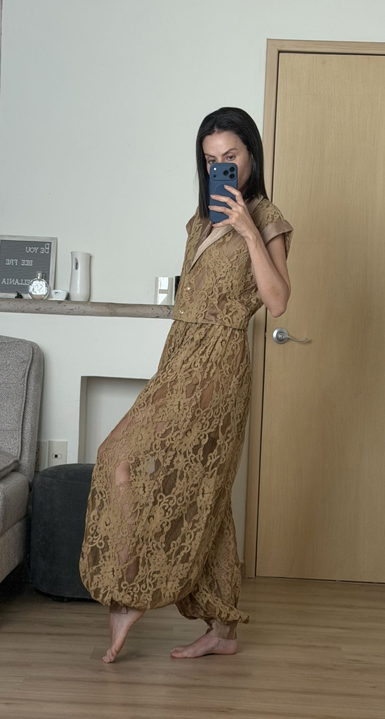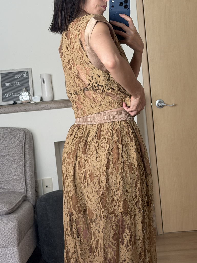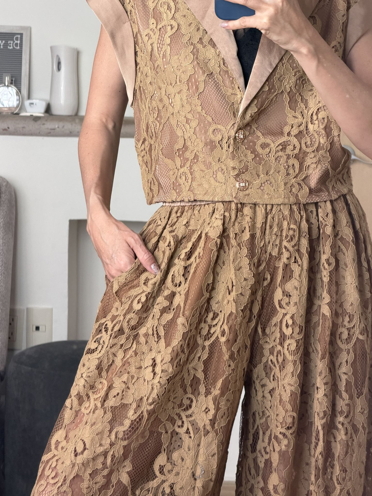 Nuestro Set Loving Encaje, confeccionado en encaje color café, tiene un diseño ultra femenino que realza la silueta. Su textura detallada aporta un aire romántico y elegante, ideal para ocasiones especiales o para un look chic y refinado.
