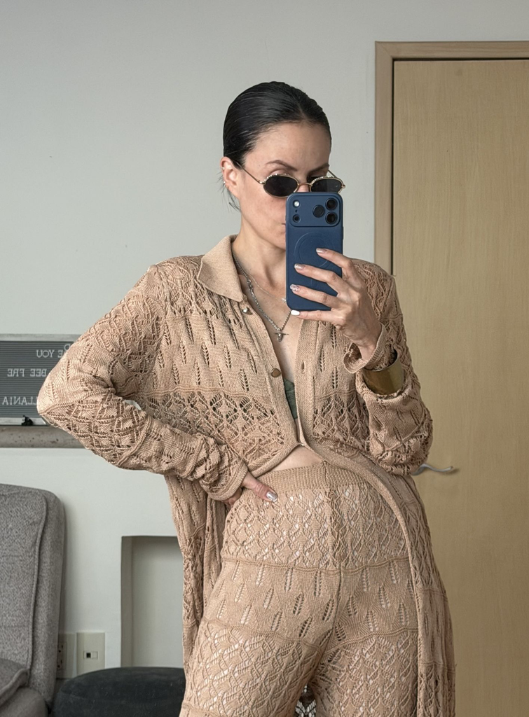 Nuestro Set Mocha Love confeccionado en tejido con textura resalta por su diseño delicado y su ajuste favorecedor. Su tono café aporta calidez y elegancia, ideal para crear looks refinados sin perder comodidad. Perfecto para ocasiones especiales, eventos de día o para un outfit chic y en tendencia.