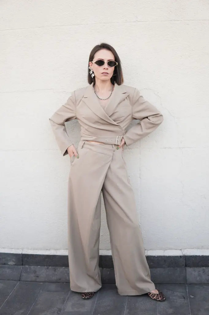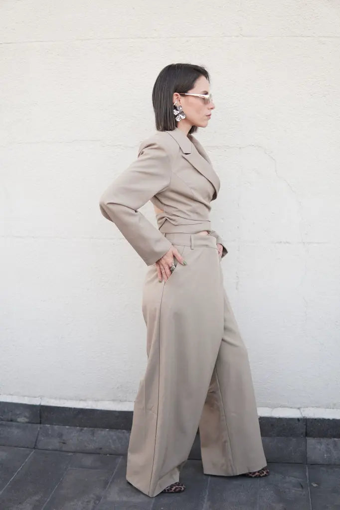 Nuestro set open, es un conjunto sofisticado que redefine la elegncia moderna. El blazer cruzado con corte estructurado resalta la figura con sutileza, mientras el pantalón de tiro alto y pierna amplia aporta movimiento y comodidad.